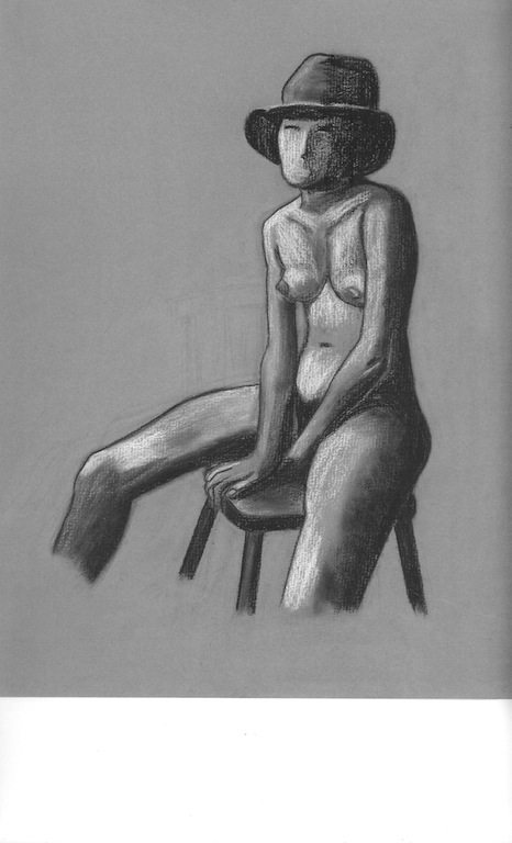 Seated Nude with Hat – conte crayon on paper