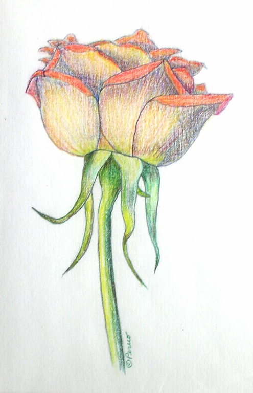 Orange Rose – colored pencil on paper, 3-1/2 x 6″