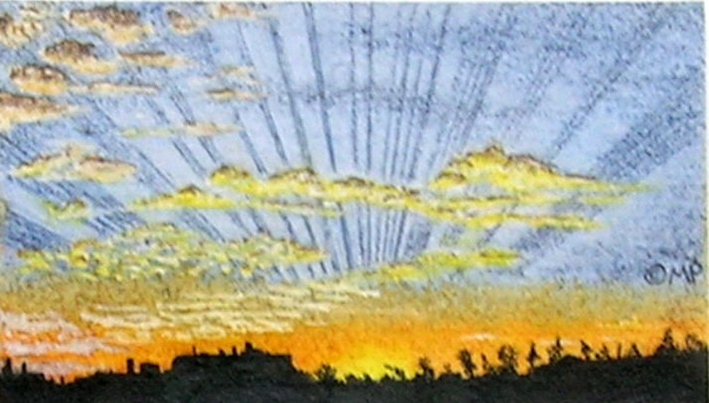 Sunset Orange and Blue – colored pencil on paper, 3 x 1-3/4″