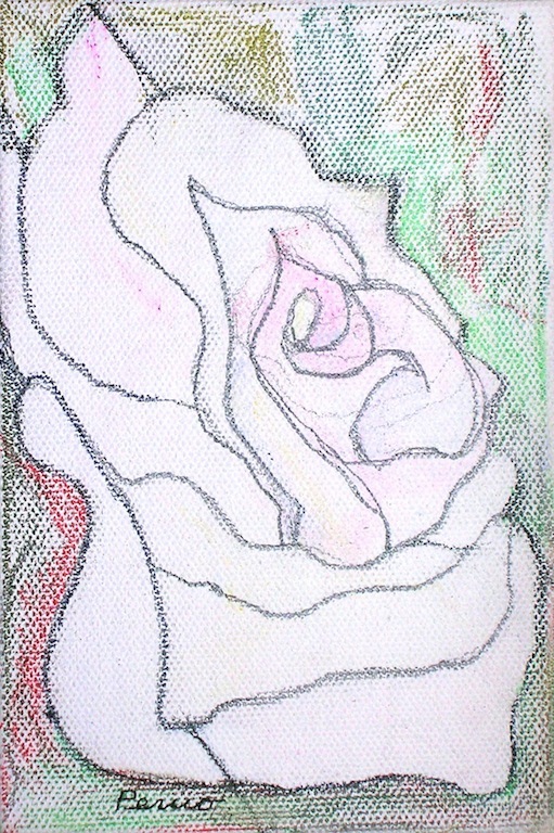 White Rose, Music of the News – colored pencil on canvas, 4 x 6″