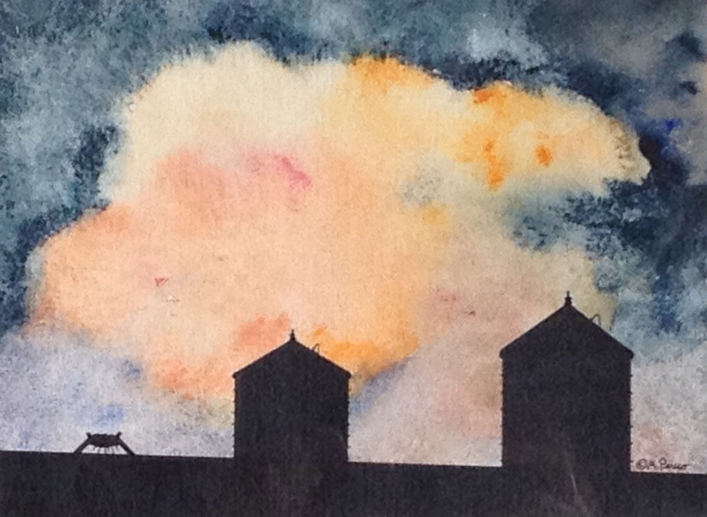 Sunset From My Window – watercolor and ink, 8 x 6″