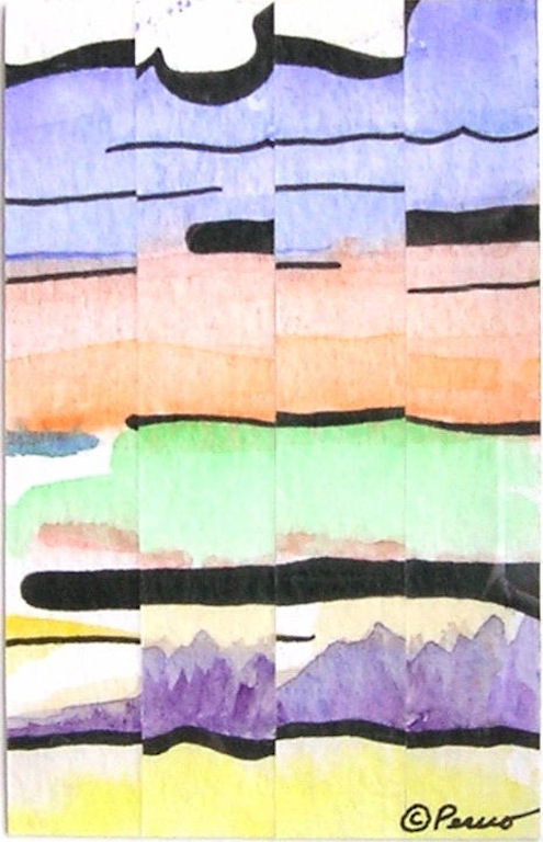 Land and Sky 3 – Watercolor and Ink Panel Assemblage