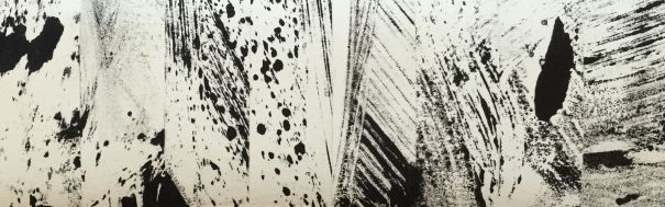 No. 102 – ink monoprint on paper, panel assemblage, 1-7/8 x 6″
