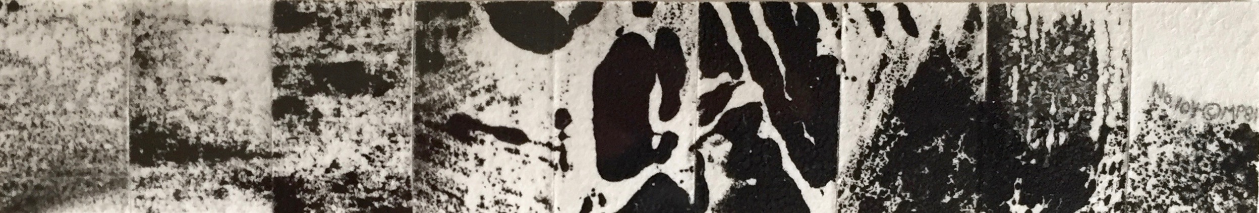 Desert to Mountain to Sea – ink monoprint on paper, panel assemblage, 3/4 x 4″