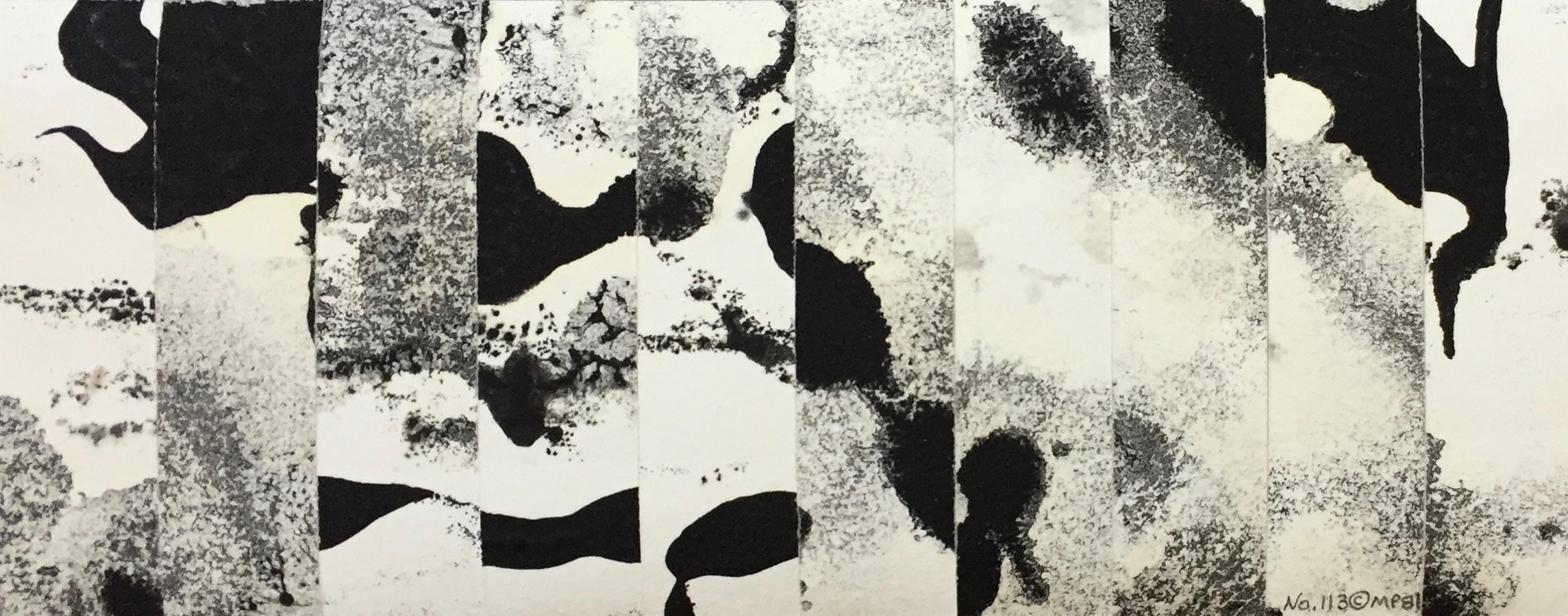 No. 113 – ink monoprint on paper, panel assemblage, 2-3/8 x 5-7/8″