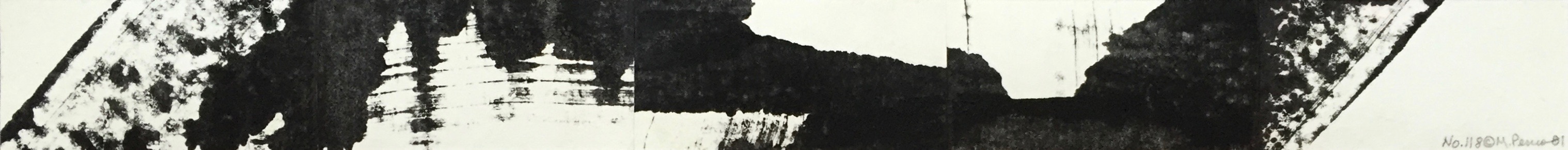 No. 118 – ink monoprint on paper, panel assemblage, 1 x 11″