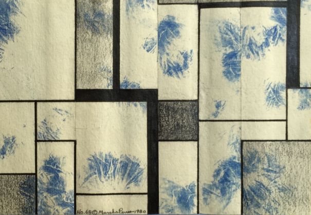 No. 68 – ink monoprint and pencil on paper, panel assemblage, 5-3/8 x 3-3/4″