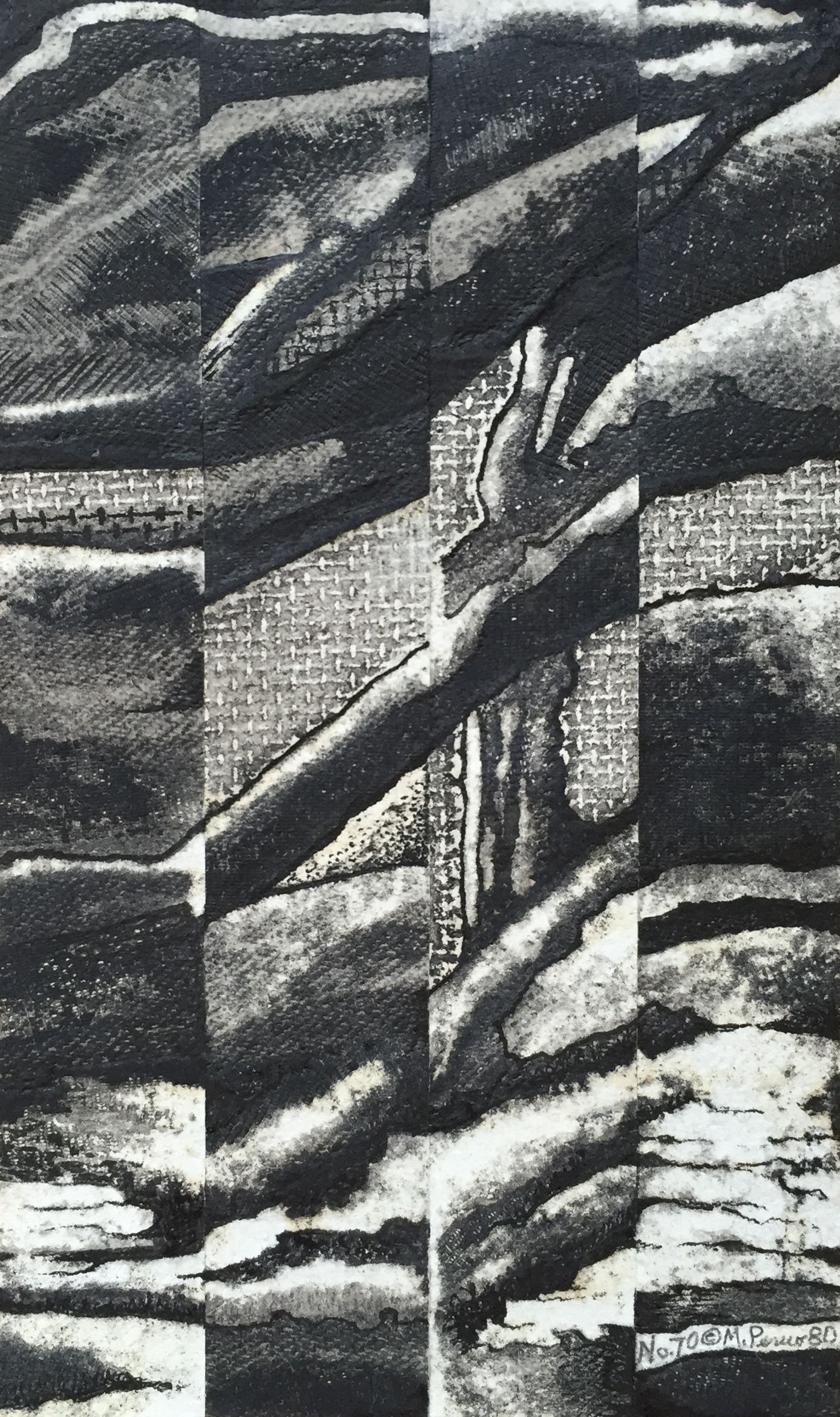 No. 70 – ink collagraph on paper, panel assemblage, 3-1/2 x 6″