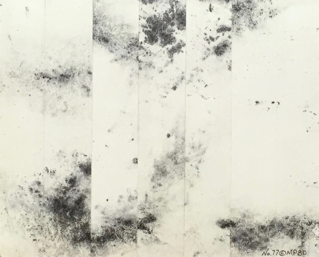 No. 77 – ink monoprint on paper, panel assemblage, 4-7/8 x 3-7/8″