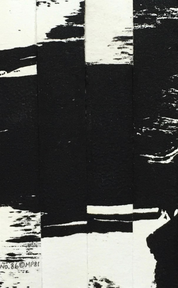 No. 86 – ink monoprint on paper, panel assemblage, 1-1/2 x 2-1/2″
