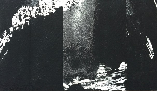 No. 91 – ink monoprint on paper, panel assemblage, 4-1/4 x 2-1/2″